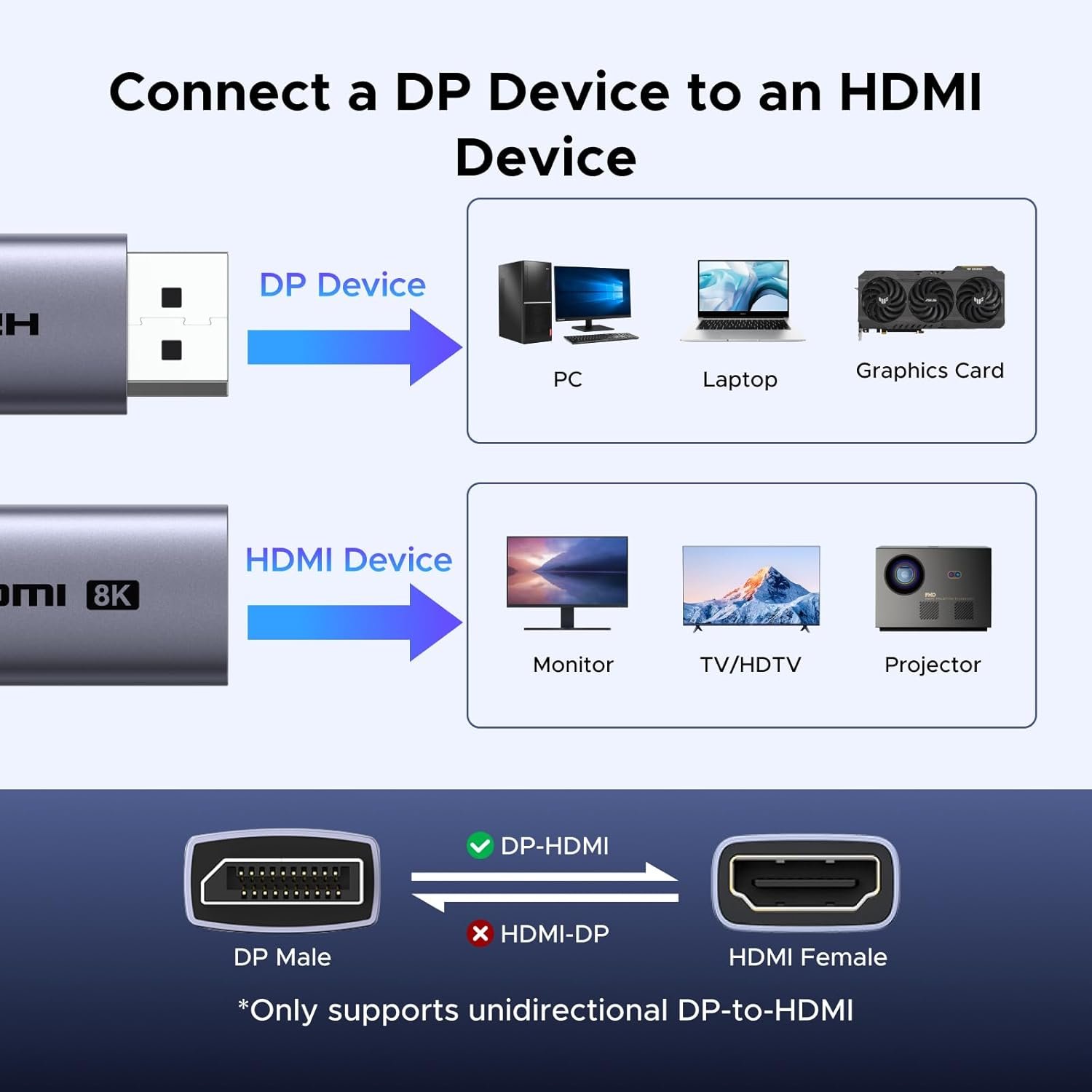 ​Passez à l’Ultra Haute Définition avec cet adaptateur DisplayPort (DP) vers HDMI haute performance. Idéal pour connecter votre PC de bureau ou votre ordinateur portable (HP, Dell, Lenovo) à un moniteur, une TV 4K ou un vidéoprojecteur.