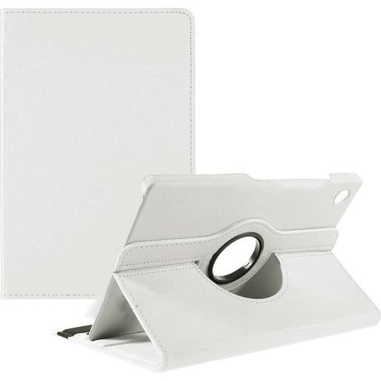 Housse Rotative Universelle pour Tablette – Simili Cuir Blanc avec Support