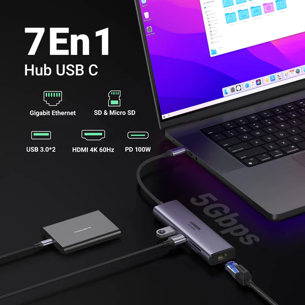 38 000 CFAAjouter au panierHub USB-C UGREEN 7-en-1 (15214) : Le compagnon idéal de votre laptop ! 🔌✨